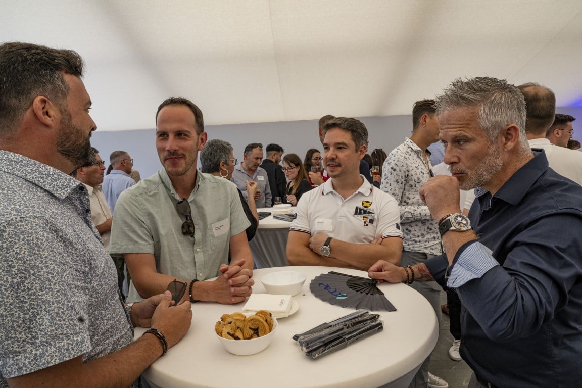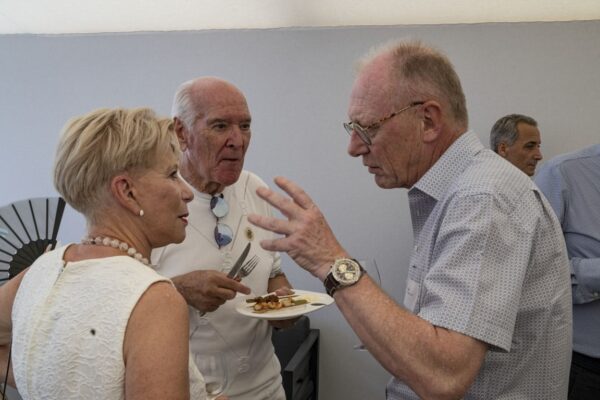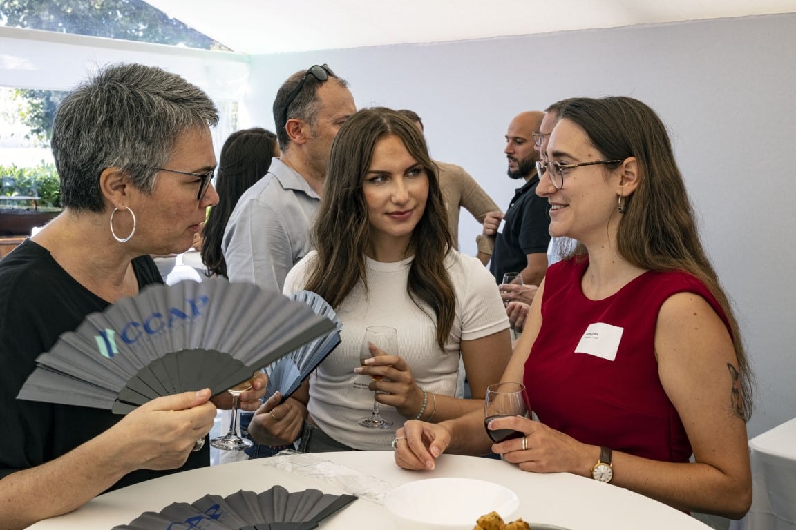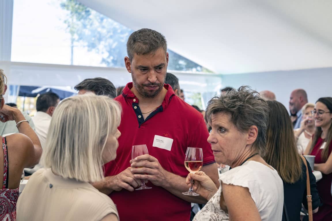 A peine avait-on débarrassé les vestiges de la garden party qu’une nouvelle démarrait. Le lendemain en effet, place aux courtiers. Ces professionnels de l’assurance collaborent régulièrement avec la CCAP en plaçant les produits de celle-ci auprès de leur client. C’était l’occasion alors de les inviter au siège et d’échanger, non pas au téléphone ou par e-mail, mais dans la vraie vie, autour d’un verre et d’une assiette. A nouveau, le fameux éventail aux armes de la CCAP a permis aux participants de se rafraîchir quelque peu.